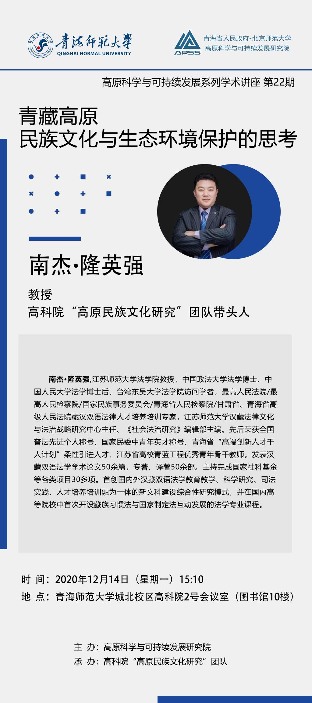 为促进365官网人文社会科学领域的学术交流,拓展师生的学术视野,增进学术交流,定于12月14日(星期一)举办高原科学与可持续发展系列学术讲座(第22期)。现将有关事项通知如下: