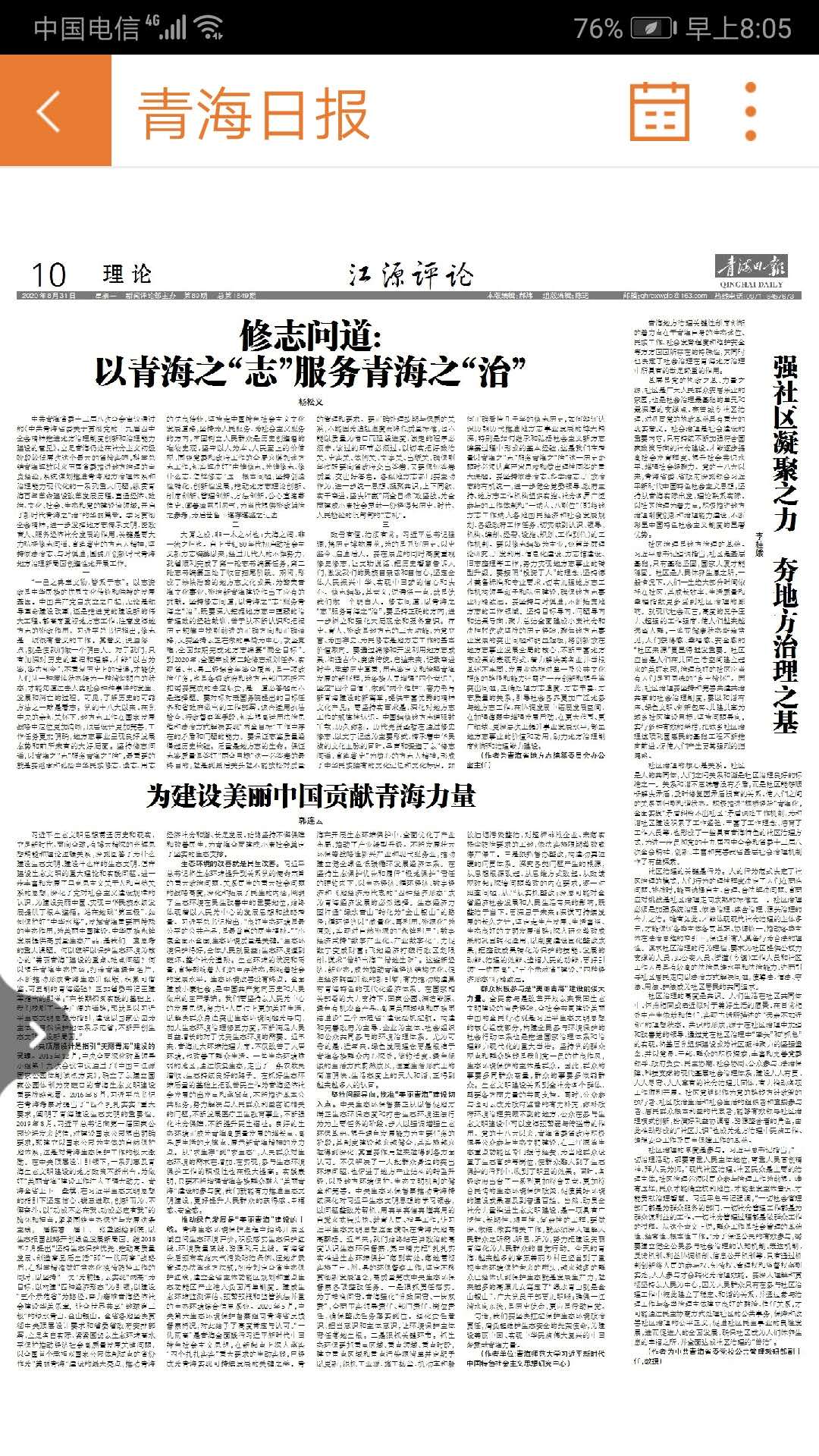 青海日报:为建设美丽中国贡献青海力量